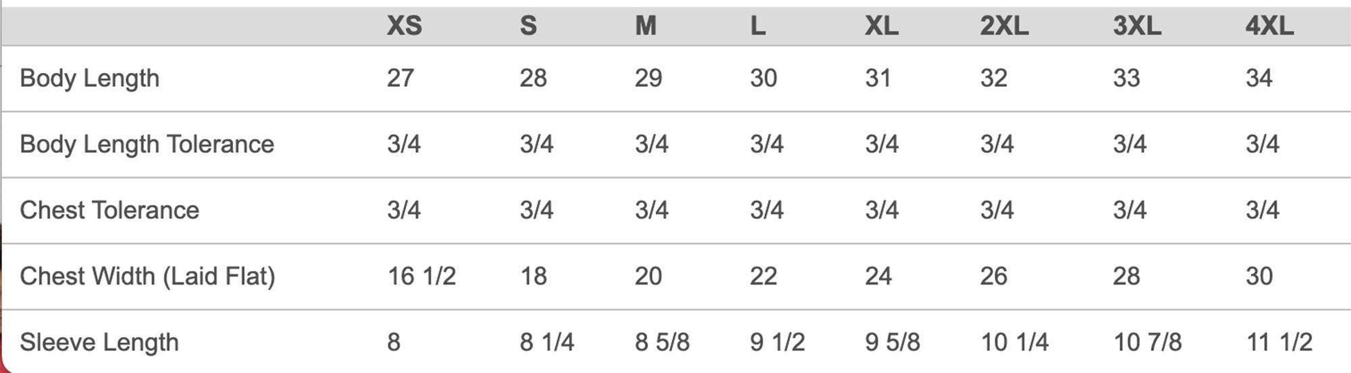 Unisex Sizes: XS, S, M, L, XL, 2XL, 3XL