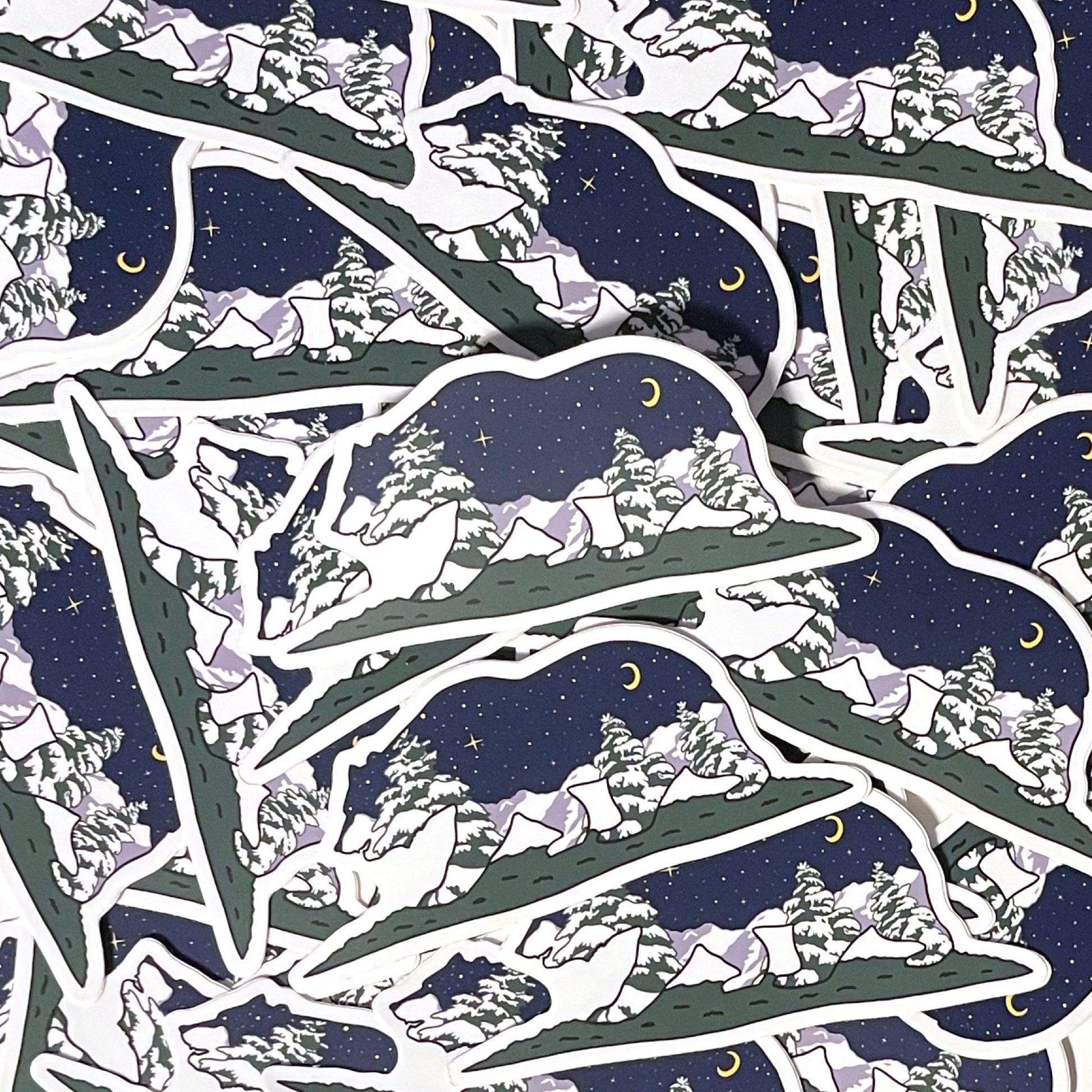 Original Illustration. Printed on thick premium reflective vinyl. Waterproof, and dishwasher safe. Each sticker coated with a protective laminate that protects against wind, rain, and sun. Great for water bottles, travel mugs, laptops, helmets, suitcases, cars and more! Sticker is 4" at longest point.