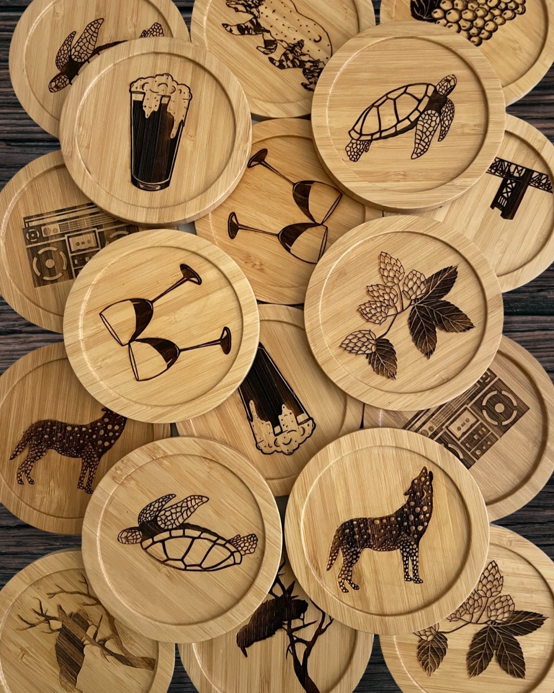 Made from high-quality bamboo, this laser etched, original art coaster is water-resistant and eco-friendly, making it a stylish and responsible addition to your home decor. Whether you‘re entertaining guests or just enjoying a quiet evening at home, this coaster will add a touch of elegance and beauty to your living space.