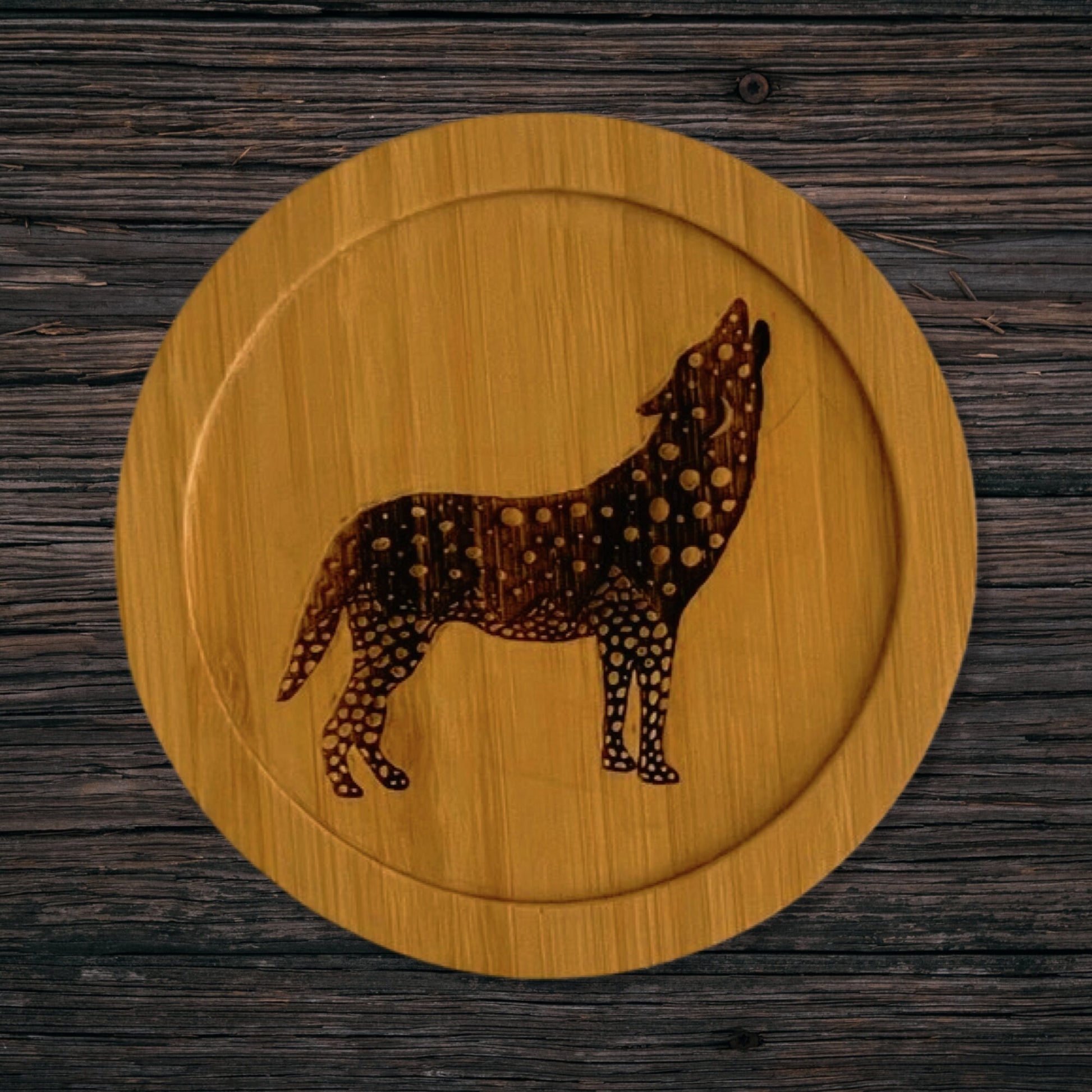 Howling Wolf Bamboo Coaster - 3.75"x3.75"