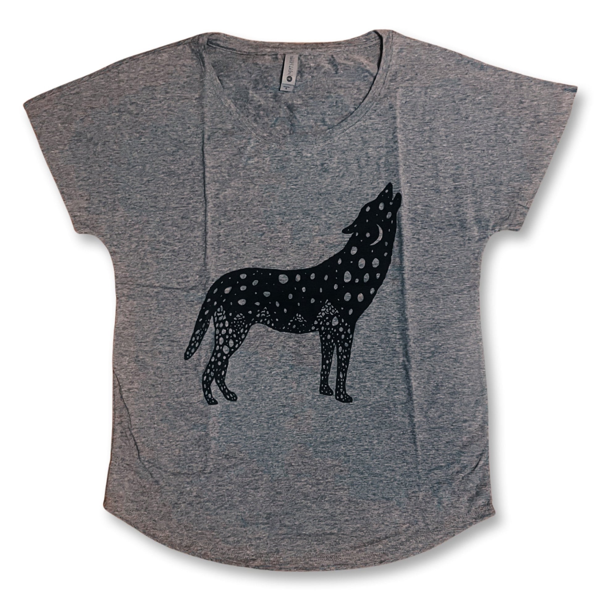The Shirt: Vintage black printed with silver ink. Tri-blend consisting of 50% polyester, 25% combed ring-spun cotton, 25% rayon for an extremely soft and light feel. Form fitted for comfort and style. The fabric has been pre-washed to keep shrinkage to a minimum. Made from ethically sourced materials.